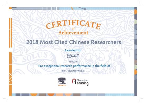 继连续位列经济、经济计量学与金融领域2015年、2016年中国高被引学者榜单第4位,天津大学马寅初经济学院院长、卓越教授,国家能源、环境和产业经济研究院院长张中祥连续五年入选经济、经济计量学与金融领域“中国高被引学者”榜单。