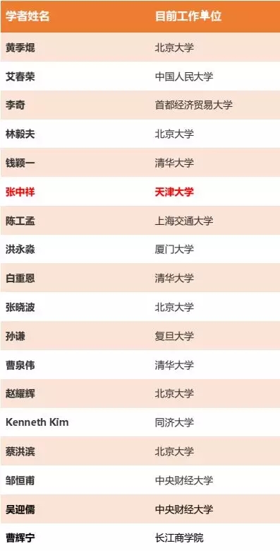 2015、2016年“经济、经济计量学和金融”领域中国高被引学者榜单
