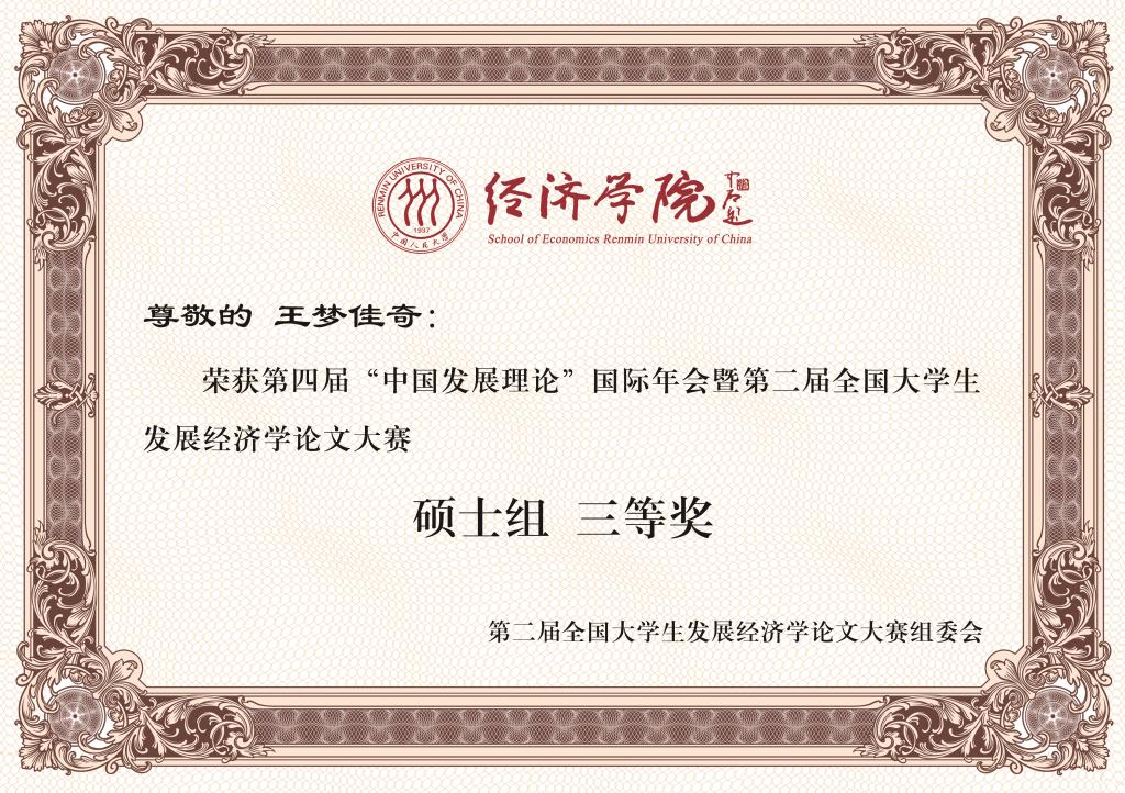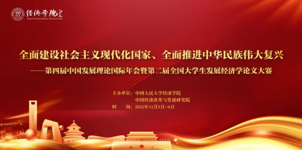 2022年11月5日-6日,由中国人民大学经济学院和中国经济改革与发展研究院共同主办的第四届中国发展理论国际年会暨第二届全国大学生发展经济学论文大赛成功召开。参赛作品覆盖了发展经济学各领域研究方向,紧密结合中国经济发展实践,并运用现代经济学研究方法“讲好中国故事,传播好中国声音、增强在国际上的话语权”。经过初评、匿名评审和终评答辩等环节,大赛选出获奖论文总共31篇,其中博士组14篇、硕士组8篇、本科组9篇。