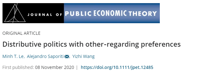 摘要:本文通过构建一个引入多种利他偏好(包括公平偏好(Fairness Concern)、不平等厌恶偏好(Inequity Aversion)等)的概率投票模型,研究了利他偏好对财富分配效率的影响。文章提出了均衡存在性以及唯一性的条件,并且在政党目标一致或者有些许差异的情况下刻画了该博弈的纯策略纳什均衡。均衡的政策是最大化全社会的利己偏好以及利他偏好加权平均的社会福利函数。研究结果表明,由政治竞争所带来的经济效率损失的大小和方向与公民的利他偏好有着密切的关系。公民的利他偏好可以缓解由政治竞争带来的财富分配低效问题。本文的结论也可以应用在其他不平滑偏好的研究中,例如损失厌恶(Loss Aversion)对财富分配的影响。
