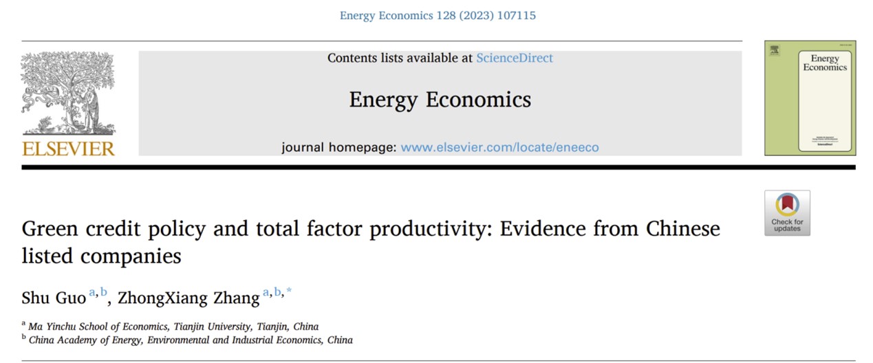 Shu Guo and ZhongXiang Zhang* (2023), Green Credit Policy and Total Factor Productivity: Evidence from Chinese Listed Companies,Energy Economics, Vol. 128, Article 107115.