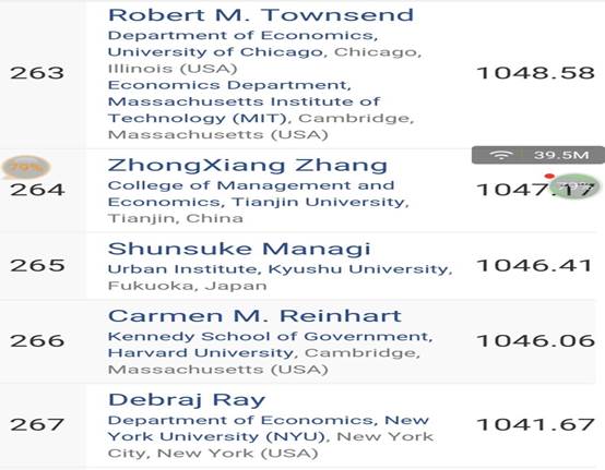 (世界上最大的经济学论文库RePEc/IDEAS基于对全球经济学家在国际期刊上发表的论文按属于每位作者的页数统计,