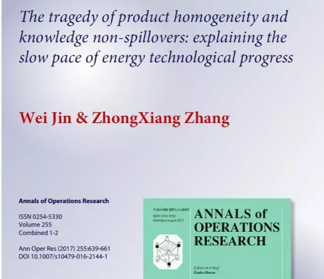 澳大利亚新南威尔士大学商学院大学校长博士后研究员(Vice-Chancellor’s Postdoctoral Research Fellow)靳玮和天津大学马寅初经济学院卓越教授、院长张中祥合作的理论文章“产品同质化和知识无外溢的悲剧:能源部门技术进步速度缓慢的经济学解释”(The tragedy of product homogeneity and knowledge non-spillovers: explaining the slow pace of energy technological progress), 近期在管理科学领域侧重方法的顶级刊物Annals of Operations Research正式发表,文章刊登在卷255,639-661页。这是继“论技术国际扩散对能源技术进步的影响机制” (On the mechanism of international technology diffusion for energy technological progress, Resource and Energy Economics, 卷46, 2016年,39 - 61页。)之后,靳玮和张中祥合作发表的第二篇理论文章。