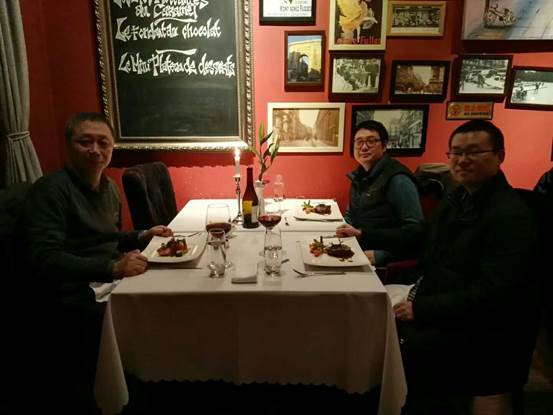 (邀请新入职的韩国同事和师资博士后在意大利风情街法国餐厅就餐)