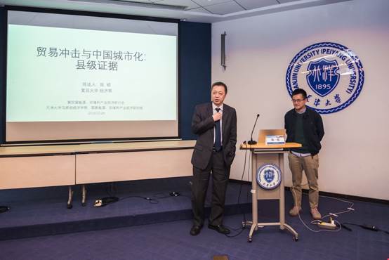 香港科技大学博士、中国青年经济学家奖获得者、复旦大学经济学院陈硕教授报告了贸易冲击与中国城市化的研究成果。他认为,在当前国际贸易保护主义抬头环境下廓清贸易冲击对中国城市化的影响具有学术重要性与现实迫切性,但相关实证证据依然有限。为填补这一空缺,他与合作者以2008年金融危机作为自然实验并基于双重差分方法实证检验了贸易冲击对中国城市化的作用。他们的研究发现,贸易冲击使城市化增速降低了0.44个百分点,该作用在控制了其他影响城市化的因素后依然稳健。贸易冲击能够解释城市化率增速的17%。就作用机制来说,陈硕认为,贸易冲击通过降低城市居民工资水平从而缩小了城乡收入差对城市化率的影响。