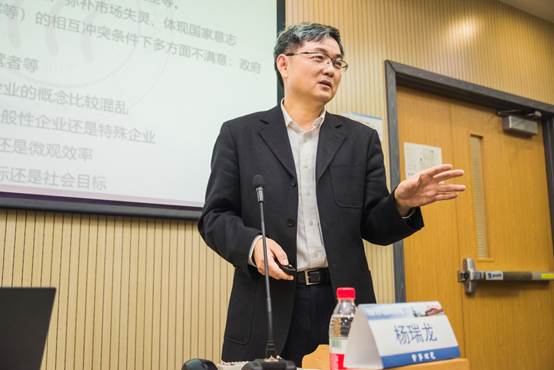 杨瑞龙全面系统地对国有企业改革的历史、逻辑以及面临的问题进行了回顾与分析。他谈到,国有企业改革存在政企分开与所有权可交易两个难题,而这两个难题指向一个问题,即国有企业的产权不够明晰,使得作为国有企业控制人的政府官员的目标与作为市场竞争主体的企业的利润最大化目标之间产生相当大的差异。这也就使得国有企业在现实中的概念需要进一步明确界定,定位、效率和目标需要进一步明晰。国有企业不完全追求利润最大化,需要承担社会责任,符合国家战略。对此,要想从根本上解决国有企业面临的产权不明晰问题,可行的办法是对国有企业进行分类别的改革,即根据国有企业提供产品性质及所处行业的差异,选择不同的改革思路。提供公共产品的国有企业应选择国有国营的模式,处于垄断性行业的国有企业应选择国有国控的模式,而处于竞争性行业的国企则应大步推进所有制改革,将其中一部分进行产权多元化的股份制改造,另一部分则实行民营化改制。进一步,杨瑞龙还对国有企业的混合所有制改革提出了一些建议。他认为,应该稳步分类推进国企混合所有制改革,进一步提升民营资本参与的程度。