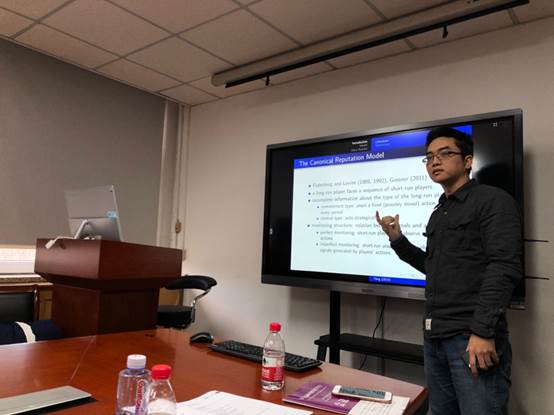 杨戈屿在微观经济理论分论坛报告了论文《不确定监测下声誉效应的稳健性》。他研究了不确定监测下的声誉效应。具体而言,杨戈屿研究了一个长期博弈参与人和一系列短期博弈参与人之间的重复博弈。长期博弈参与人既可能是每期都采用相同的阶段博弈策略的承诺类型,也可能是一个一般类型。他指出这篇论文的创新之处在于不确定监测。在不确定监测下,短期博弈参与人接收的信号与长期博弈参与人的策略之间,可能没有直接关系。这种不确定性给声誉的建设和维持带来了新的挑战。他证明了,当短期博弈参与人无法在统计上区分承诺行动与不良行为时,标准声誉结果就可能会崩溃。同时杨戈屿还提供了声誉效应可以扩展到当前框架的充分条件。今天消费者能从各种评价网站获得大量信息来帮助他们决策,但是这些信息大部分是嘈杂的,充满不确定性。他的研究能帮助我们理解在这样一个信息嘈杂的市场,企业和消费者是如何互动的。同时也能为我们对这些评价网站的管理监督提供参考。
