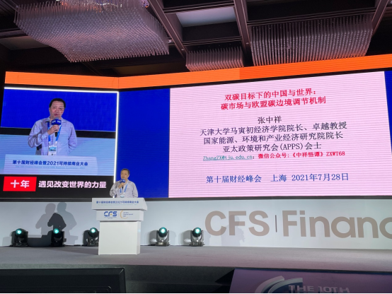 天津大学马寅初经济学院创院院长、卓越教授, 国家能源、环境和产业经济研究院院长张中祥应邀在峰会上以“双碳目标下的中国与世界:碳市场与欧盟碳边境调节机制”为题做了大会主旨发言。