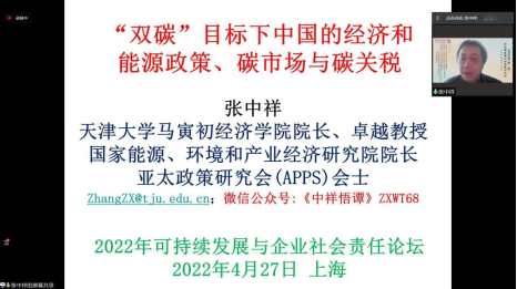 天津大学马寅初经济学院创院院长、卓越教授,国家能源、环境和产业经济研究院院长张中祥应邀以“双碳目标下中国的经济与能源政策、碳市场与碳关税”为题做了主旨报告。他的报告聚焦以下四方面内容:一是如何正确认识和理解“双碳”策略。二是中国碳中和的承诺对中国本身和全球的影响。中国碳中和的承诺首先对中国本身产生深远的影响,同时对全球也产生非常大的影响,增强了实现《巴黎协定》确定的全球温升控制目标的可能性。三是中国如何把握好实现承诺努力的方向和把力气使在何处以及采取怎样的措施才能达到大量减排的目的,同时尽可能减少对中国经济的影响。报告涉及中国经济、能源和区域政策,生产端、使用端和政策端推进各地区、各行业有序达峰的着力点,对全国碳市场首个履约周期运行情况评价及下一步建设的着力点。四是对欧盟碳边境调节机制的深入分析和中国的应对。