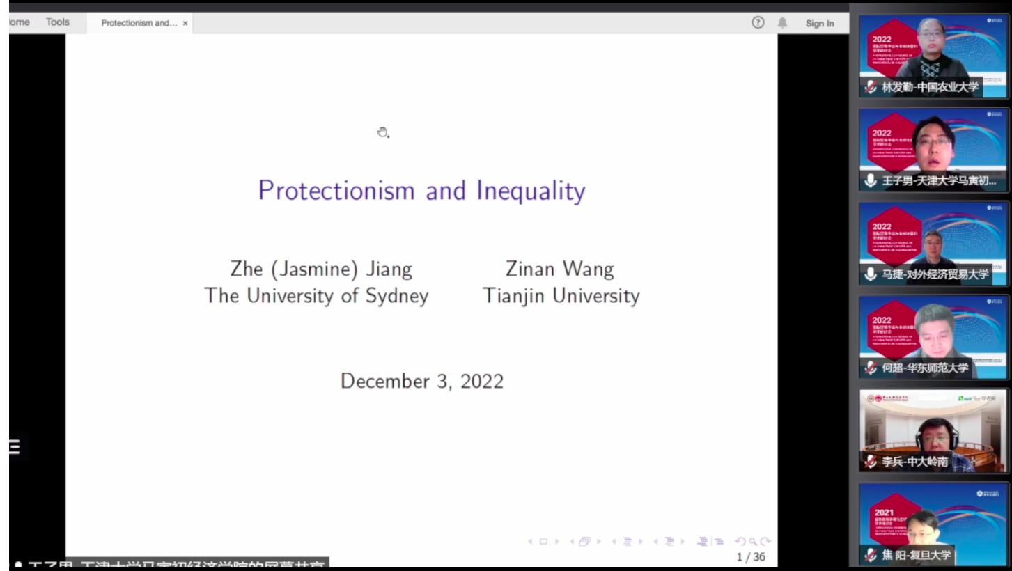 天津大学马寅初经济学院助理教授王子男在此次学术研讨会上报告了与悉尼大学Zhe (Jasmine) Jiang合作的论文“Protectionism and Inequality”。该论文从实证与理论两方面探讨了贸易保护主义对不同技能劳动力之间的收入分配的影响。论文首先运用结构性向量自回归的方法结合美国暂时性贸易壁垒的高频数据对该影响做了的估计。随后又运用36个国家实施关税的面板数据做了估计。论文发现了比较稳健的实证结果:贸易保护主义在短期内会降低技能溢价但会提升高、低技能劳动力的就业之比。为了解释这一实证发现,论文构建了一个两国的动态一般均衡模型,并在模型中嵌入了非对称的搜寻与匹配摩擦、资本技能互补以及生产者动态。该理论模型成功地数值模拟出了与实证证据相一致的结果。论文最后利用反事实分析探讨了模型产生这一结果的经济学机制。其中,非对称的搜寻与匹配摩擦与资本技能互补在定性上决定了贸易保护主义对收入分配的影响,而引入生产者动态则在定量上增强了该效果。