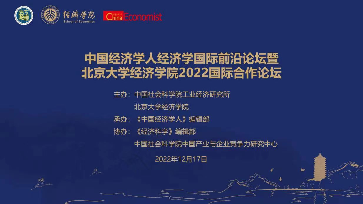 为了推动中外经济学前沿交流对话,推动中国经济学走向世界,助力中国式现代化进程实现,2022年12月17日,中国社会科学院工业经济研究所与北京大学经济学院共同举办了“2022中国经济学人经济学国际前沿论坛暨北京大学经济学院2022国际合作论坛”。此次论坛由《中国经济学人》编辑部承办,北京大学《经济科学》编辑部与中国社会科学院中国产业与企业竞争力研究中心协办。