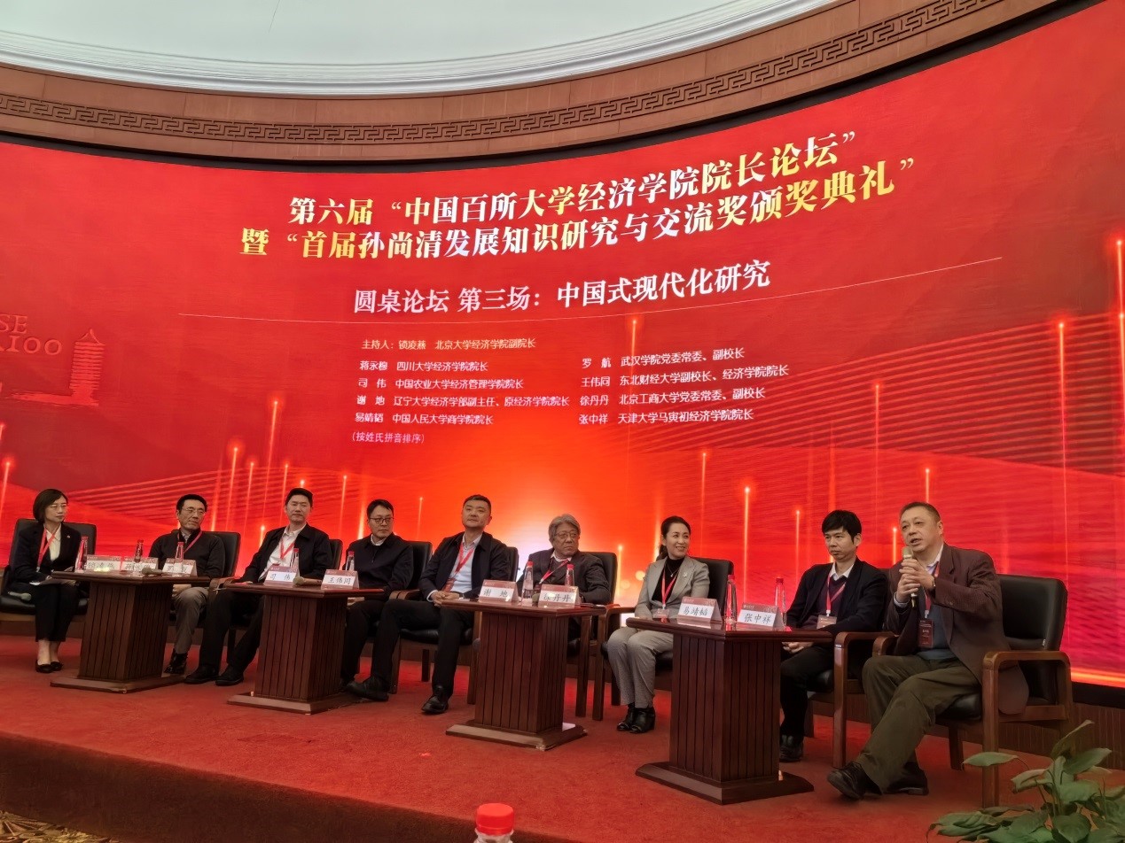 “中国式现代化研究”圆桌论坛由北京大学经济学院副院长锁凌燕主持。四川大学经济学院院长蒋永穆,武汉学院党委常委、副校长罗航,中国农业大学经济管理学院院长司伟,东北财经大学副校长、经济学院院长王伟同,辽宁大学经济学部副主任、原经济学院院长谢地,北京工商大学党委常委、副校长徐丹丹,中国人民大学商学院院长易靖韬,天津大学马寅初经济学院院长张中祥等嘉宾围绕主题进行了深入交流和观点分享。