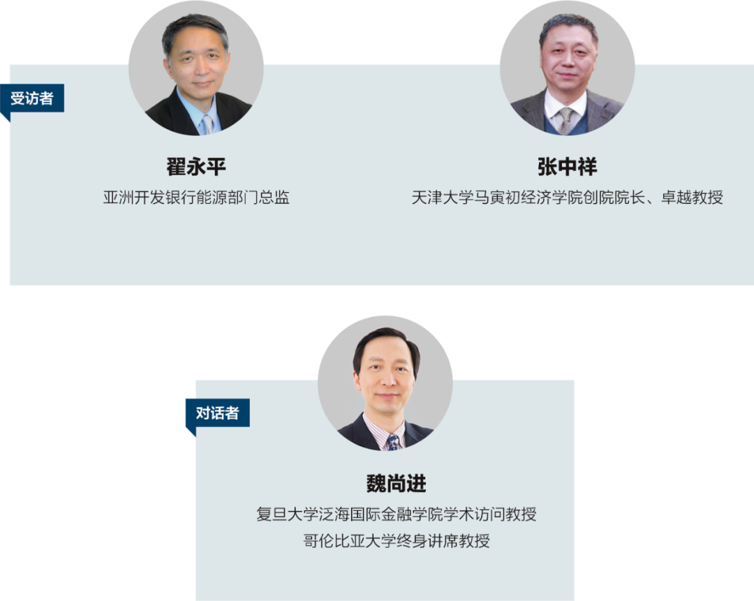 面对新的历史目标,中国需要站在新的国际视角寻求发展与合作,国际社会也呼唤新的规则和逻辑。关于这一话题,《复旦金融评论》主编、哥伦比亚大学终身讲席教授魏尚进从经济学家的角度与亚洲开发银行能源部门总监翟永平和天津大学马寅初经济学院创院院长、卓越教授张中祥——两位深耕能源、环境和气候变化领域的专家——展开深度对话。