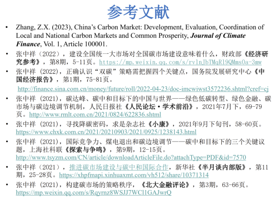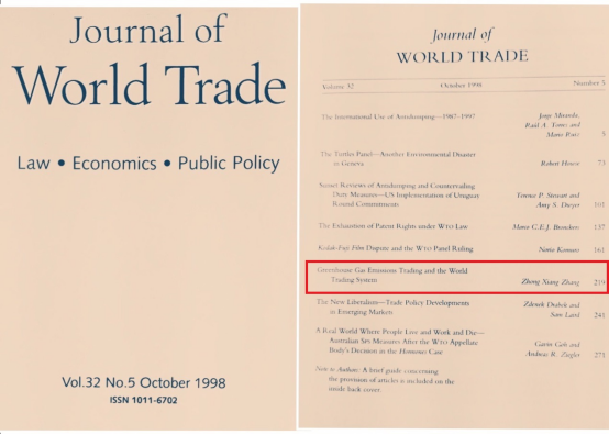 张中祥从上世纪90年代在荷兰格罗宁根大学法学院和经济学院任职时起就呼吁在全球实施碳排放交易这一市场机制。早在1998年,他就与美国环境和资源经济学家协会理事长TomTietenberg教授等欧美学者应邀为联合国贸发会议(UNCTAD)撰写、1999年由联合国正式出版的《温室气体排放交易国际规则》的报告,1998年美国未来资源研究所(RFF)曾以Emissions Trading 101对这个联合国报告做过报道;他在法学和经济学国际杂志Journal of World Trade上发表了全球该领域第一篇论述温室气体排放交易和世界贸易的论文;在美国东西方中心任职资深研究员时,张中祥应邀与包括已故Peter Bohm(斯德哥尔摩大学经济学教授、1985年Elsevier出版的著名Handbook丛书作者), Wallace Oates(美国国家科学院院士、世界顶级公共财政和环境经济学家)和David Pearce(首位欧洲环境和资源经济学家学会终身成就奖获得者,为张中祥1997年由英国Edward Elgar出版、入选“环境经济学里程碑”丛书的英文独著的封面写了荐言)在内的其他5位欧美顶级经济学家对欧盟碳排放交易体系提出改进建议。