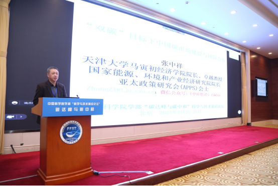 天津大学马寅初经济学院创院院长、卓越教授,国家能源、环境和产业经济研究院院长张中祥应邀以“双碳目标下中国碳市场建设与国际合作”为题做了主题发言。他主要讨论了碳排放权交易试点的运行、经验教训和不足;全国碳市场启动以来的运行情况和评价以及与欧盟碳市场比较;建设统一大市场对全国碳市场建设意味着什么;完善与加快推进全国碳市场建设的着力点以及欧盟碳关税对中国的影响和启发等主要议题。在固碳端讨论环节,张中祥回应了有关碳价对能源转型的作用、碳市场拍卖机制、电力和碳相关市场的协同发展等方面的问题。