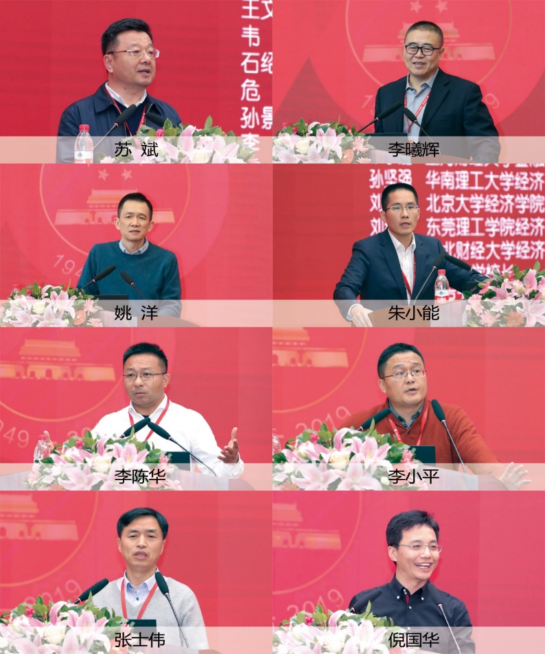 12月8日下午,八个平行分论坛同时展开,包括:新疆财经大学经济学院院长苏斌和山东大学东北亚学院副院长张景全担任召集人的分论坛一“新中国70年经济建设伟大成就和理论总结”;上海财经大学金融学院党委书记刘莉亚和中央民族大学管理学院院长李曦辉担任召集人的分论坛二“经济学教学、科研和服务国家社会发展”;北京大学国家发展研究院院长姚洋和南京邮电大学经济学院院长黄宝凤担任召集人的分论坛三“培养经济学领域卓越的社会主义建设者和接班人”;上海财经大学金融学院副院长朱小能和江西财经大学经济学院院长张利国担任召集人的分论坛四“新时代经济学领域教师队伍建设与发展”;南京审计大学经济学院院长李陈华和北京工商大学研究生院院长徐丹丹担任召集人的分论坛五“如何提升新时代经济学学科建设水平和质量”;中南财经政法大学经济学院院长李小平和宁波大学商学院院长金祥荣担任召集人的分论坛六“如何深化新时代经济学教育改革和创新”;内蒙古大学经济管理学院党总支书记张士伟和中南财经政法大学金融学院院长余明桂担任召集人的分论坛七“如何培养经济学领域创新型、复合型、应用型人才”;北京工商大学经济学院院长倪国华和河南大学经济学院院长宋丙涛担任召集人的分论坛八“经济学如何服务中华民族伟大复兴重要使命”。