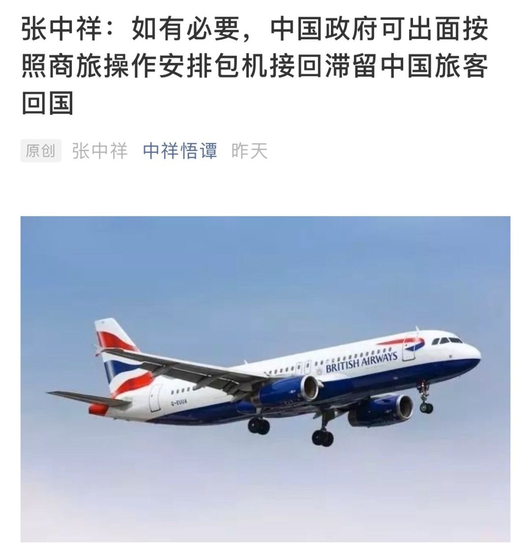另一种方式是,中国政府可出面安排包机接回。包机也可以向每位滞留旅客收取一些费用。