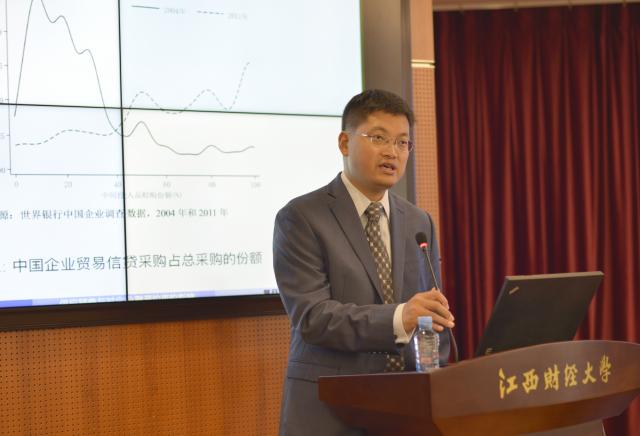 国家级青年人才、复旦大学经济学院李志远教授作了“供应链参与对企业融资约束的影响——来自中国开发区政策的证据”的主旨报告。李教授以国家开发区主导产业政策目录作为产业链的外生冲击,采用双重差分模型识别“开发区的设立×主导产业政策优惠”这一外生冲击对主导产业上下游企业融资约束的影响。研究发现供应链参与对企业的融资约束会产生重要的影响。具体表现为参与供应链上游生产的企业可以从主导产业的发展中实现应收账款的下降,信贷约束得以缓解;参与供应链下游生产的企业可以从主导产业的发展中实现应付账款的上升,信贷约束得以缓解。