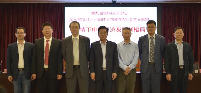 为深入领会和贯彻落实习近平总书记2020年8月24日在经济社会领域专家座谈会上的讲话精神,进一步推动我国经济高质量发展,10月28日,江西财经大学经济学院和习近平经济思想研究院联合主办“疫情下中国经济发展新格局”高端论坛。本次论坛邀请了国家级领军人才、山东大学经济研究院院长黄少安教授,天津大学马寅初经济学院院长、卓越教授张中祥教授,国家级青年人才、复旦大学经济学院李志远教授等三位著名专家作为演讲嘉宾。江西财经大学副校长袁红林教授出席本次论坛并致辞,经济学院院长张利国教授主持本次论坛,校内外200余名师生参会。