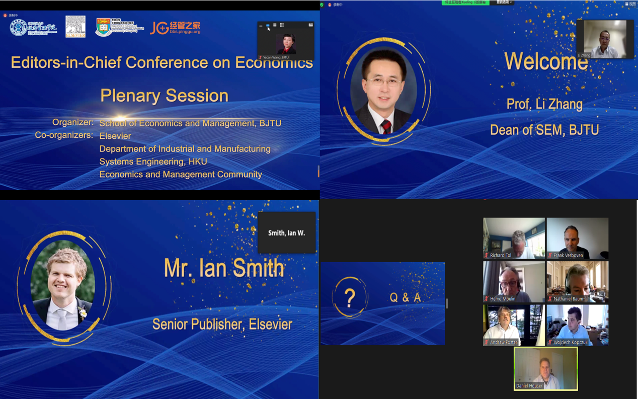 中国社会科学网讯(记者 张译心)6月11日至20日,“经济学顶级期刊主编面对面会议”在北京交通大学成功举办。该会议由北京交通大学经济管理学院主办,爱思唯尔集团、香港大学工业及制造系统工程系和经管之家论坛协办,通过ZOOM在线会议、哔哩哔哩、经管云课堂在线直播。会议邀请经济学领域八大顶级期刊的主编与国内学术权威汇集云端,进行“面对面”线上交流。在全体会议环节,八位主编齐聚一堂,全面剖析期刊定位与特色,精准把脉写作与投稿的焦点与痛点;八场专题研讨讲座则每场邀请一位顶级期刊主编分享其最新研究,同时特邀两位同领域的国内外资深学者进行深度点评。会议以深刻的主题、丰富的内容、创新的活动形式,吸引了超过14000人次参会,并受到了众多学术团体与媒体的关注与支持。