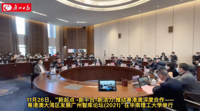 2021年11月26日,“新起点·新平台·新活力:推动粤港澳深度合作——粤港澳大湾区发展广州智库2021年度论坛”在华南理工大学召开。北京、上海、天津和粤港澳大湾区等地的著名学者齐聚一堂,从规则引领、广深联动、人才国际化等角度,为粤港澳大湾区的更开放、更高质量发展建言献策。