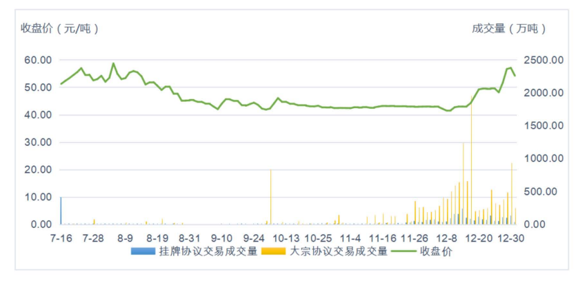 从市场数据也可以发现,全国碳市场启动当天的成交量达到410.4万吨,但从第一个交易日开始成交量开始下降。8-10月日均成交量25万吨,11月日均成交105万吨,临近履约交易量开始提升,12月日均成交616万吨。
