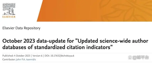 2023年10月4日,美国斯坦福大学John P.A. Ioannidis教授团队和爱思唯尔数据库(Elsevier Data Repository)发布了第六版《2022年全球前2%顶尖科学家榜单》(World’s Top 2% Scientists)。榜单以Scopus数据库为依据,基于引用次数、H因子、HM因子等6种指标,根据其“终身影响力”(1960-2022)和“年度影响力”,从22个领域和176个子领域,近700万名科学家中遴选出世界排名前2%的科学家。
