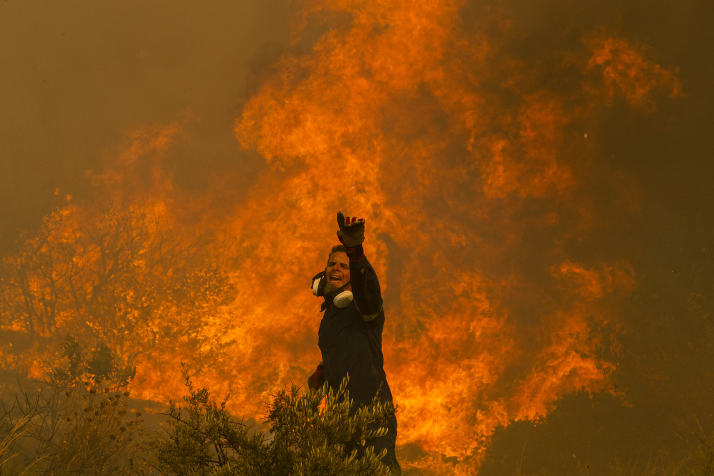A firefighter battles a wildfire in the village of Hasia, near Athens, Greece, on August 22 (XINHUA)