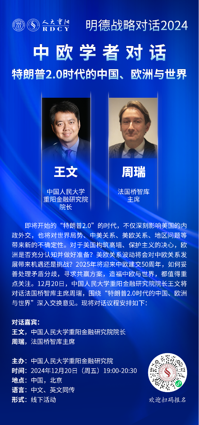 主讲嘉宾:王文(中国人民大学重阳金融研究院院长),周瑞(法国桥智库主席)