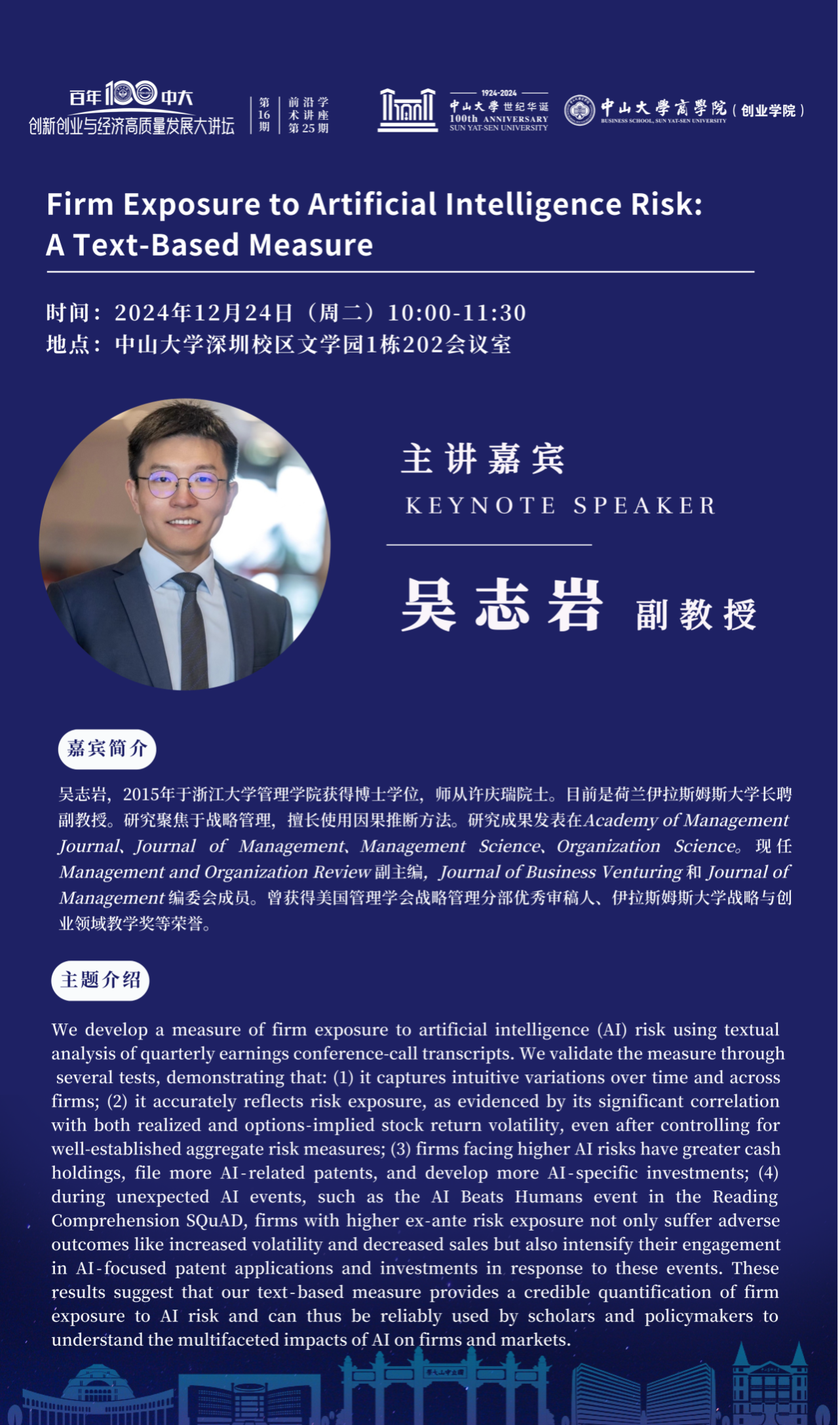主讲人:吴志岩(荷兰伊拉斯姆斯大学长聘副教授)