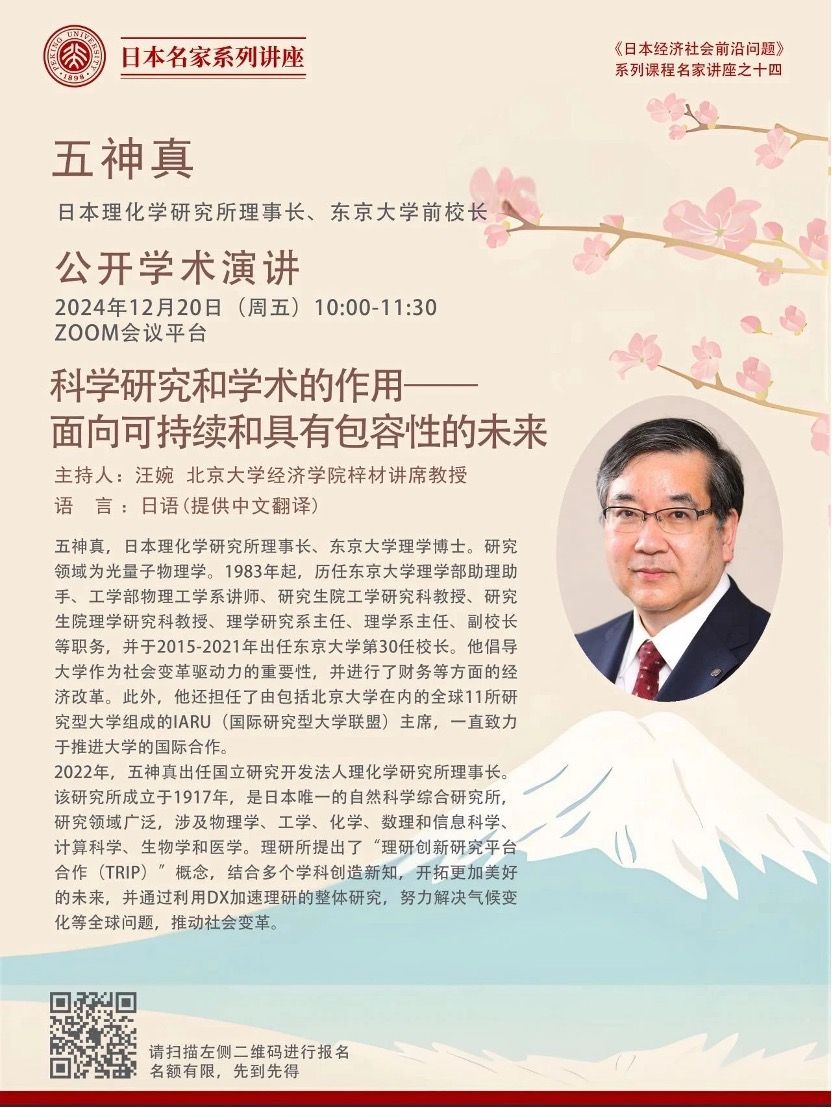 主讲人:五神真(日本理化学研究所理事长、东京大学前校长)