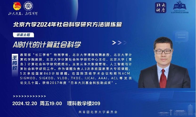 主讲人:王腾蛟(教育部“长江学者”特岗学者,北京大学博雅特聘教授,北京大学计算机学院教授,北京大学计算社会科学研究中心主任)
