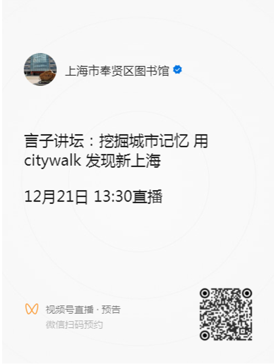 参与方式:扫码观看“上海市奉贤区图书馆”视频号直播