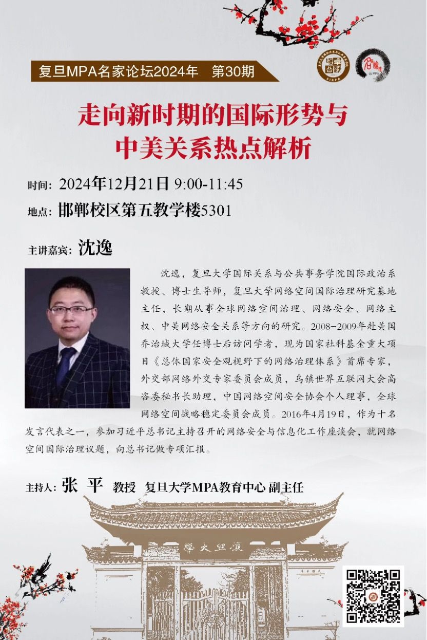主讲人:沈逸(复旦大学国际关系与公共事务学院国际政治系教授、博士生导师,复旦大学网络空间国际治理研究基地主任)