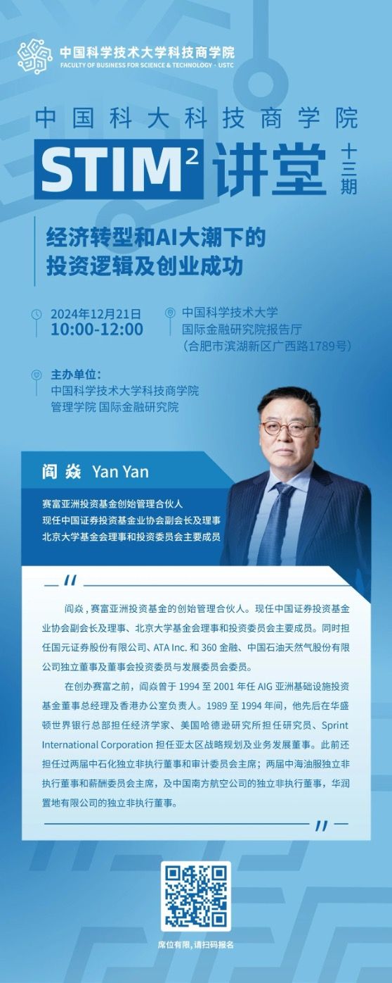 参与方式:中国科大国金院报告厅,扫码报名