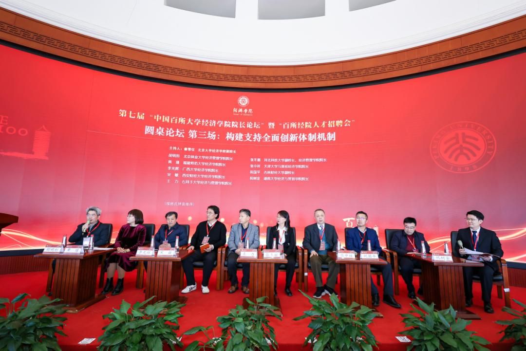 2024年12月14日,第七届“中国百所大学经济学院院长论坛”暨“百所经院人才招聘会”在北京大学经济学院成功举办。本届论坛共有来自全国206所院校的36位校长和229位院长到场出席,设立了“构建高水平社会主义市场经济体制”、“健全推动经济高质量发展体制机制”、“构建支持全面创新体制机制”、“完善高水平对外开放体制机制”四个圆桌论坛。