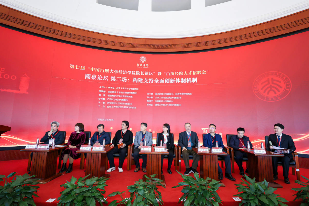 “健全推动经济高质量发展体制机制”圆桌论坛由北京大学经济学院副院长张亚光主持。浙江工商大学副校长陈衍泰,内蒙古大学副校长杜凤莲,清华大学经济管理学院副院长何平,对外经济贸易大学党委常委、副校长黄薇,华南理工大学经济与金融学院党委书记黄国清,新疆大学经济与管理学院院长吕雁琴,华南师范大学副校长王春超,中国人民大学经济学院执行院长于春海,云南大学经济学院院长张林等嘉宾进行了充分交流。