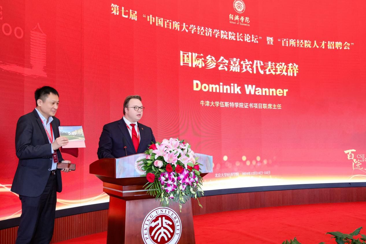 北京大学经济学院党委书记崔建华代表组委会宣读了《第七届中国百所大学经济学院院长论坛倡议书》,从深化理论研究、强化人才培养、服务国家战略、增强国际传播力四个方面提出倡议。