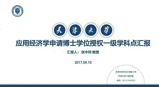 从2017年端午节开始,全力以赴投入申报应用经济学一级学科博士点,几乎实质性的东西都是亲自操刀、反复核实,汇报的PPT反复演练,2017年9月10日教师节参加了天津市组织的天津市高校申请教育部经管类学科硕、博士点评审答辩。