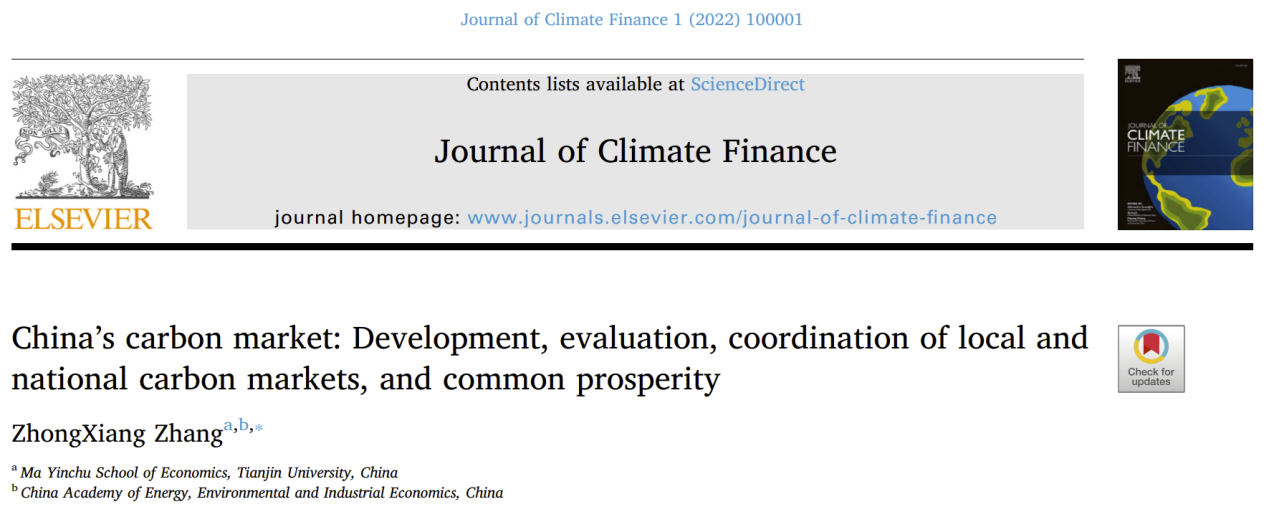 ZhongXiang Zhang (2022), China’s Carbon Market: Development, Evaluation, Coordination of Local and National Carbon Markets and Common Prosperity, Journal of Climate Finance, Vol. 1, Article 100001.