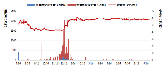 自中国全国碳市场运行以来,总体上讲,碳价并未出现大幅涨落,挂牌价格在40~60元/吨范围内波动。然而,挂牌价格高估了整体碳市场价格,原因在于大宗协议绝对主导整体碳市场交易,而大宗协议交易相对挂牌交易存在一定的折价。大宗协议交易主要是通过集团内部配额分配、不同排放控制企业之间直接谈判或通过中介谈判实现的。由此产生的交易相对复杂,交易过程不够透明,结算的交易价格既不能反映配额的价值,也不能反映减排的边际成本,价格信号失真。