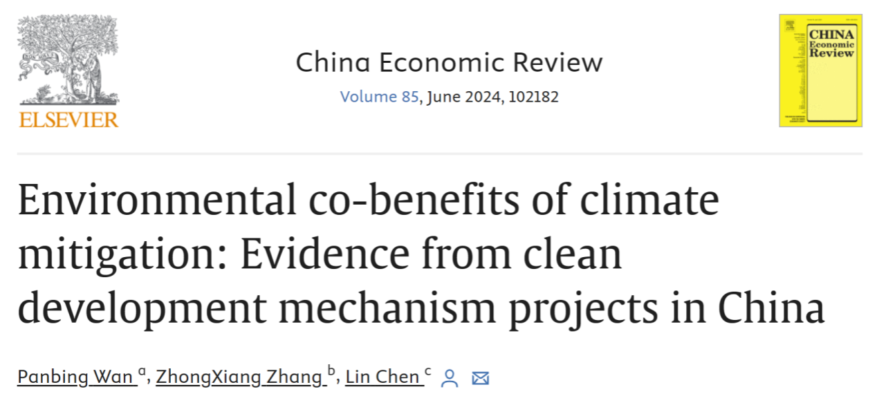 武汉大学经济与管理学院特聘副研究员、天津大学马寅初经济学院博士后万攀兵,天津大学卓越教授、马寅初经济学院创院院长,国家能源、环境和产业经济研究院院长张中祥与暨南大学产业经济研究院陈林教授合作的文章“Environmental co-benefits of climate mitigation: Evidence from clean development mechanism projects in China”(缓解气候变化的环境协同效益——来自中国清洁发展机制项目的证据)在Elsevier出版社出版的SSCI经济类一区期刊China Economic Review《中国经济评论》正式发表,收录在该刊2024年6月出版的卷85,文章编号为102182。