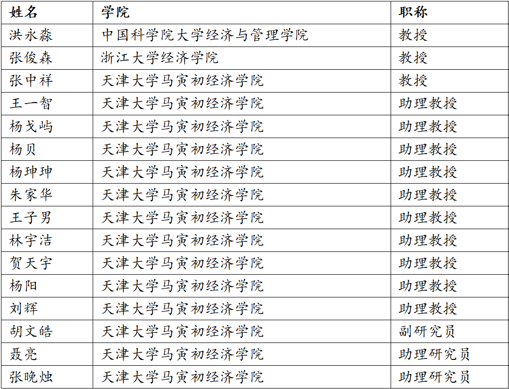 主办单位:·天津大学马寅初经济学院·天津大学研究生院