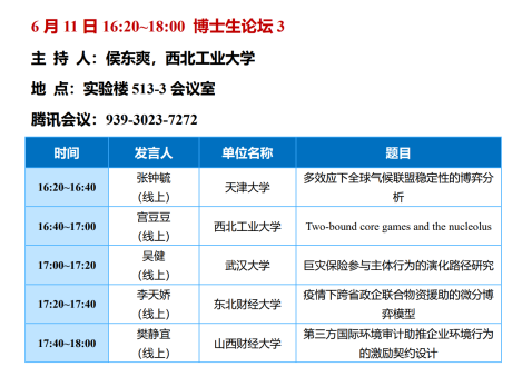 2022年6月11-12日,博弈论及其应用高端论坛在西安召开。该论坛聚焦博弈论国际学术前沿及研究热点,推动博弈论理论研究与实践应用的创新发展,由西安财经大学和中国运筹学会博弈论分会主办。