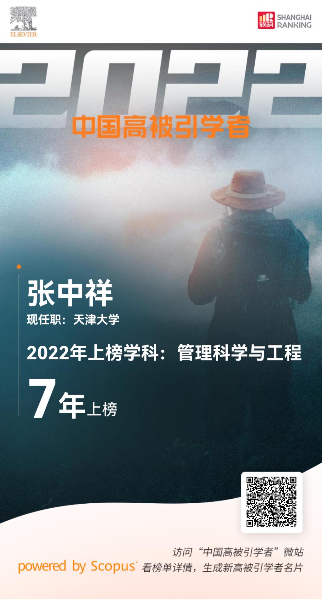 2023年3月28日,全球性信息分析公司爱思唯尔(Elsevier)正式发布了2022“中国高被引学者”(Highly Cited Chinese Researchers)榜单。天津大学马寅初经济学院创院院长、卓越教授,国家能源、环境和产业经济研究院院长张中祥自该榜单发布以来连续九年入选经管领域“中国高被引学者”榜单。