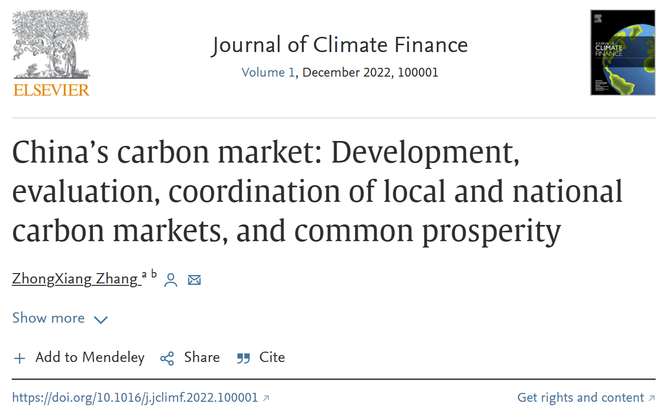 ZhongXiang Zhang (2022), China’s Carbon Market: Development, Evaluation, Coordination of Local and National Carbon Markets and Common Prosperity, Journal of Climate Finance, Vol. 1, Article 100001.