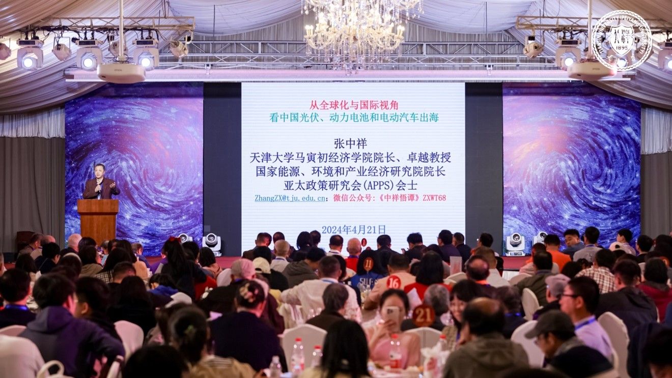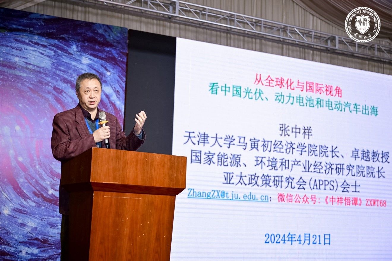应上海校友会邀请,天津大学卓越教授、马寅初经济学院创院院长,国家能源、环境和产业经济研究院院长张中祥以《从全球化与国际视角看中国光伏、动力电池和电动汽车出海》为题做了特邀报告。