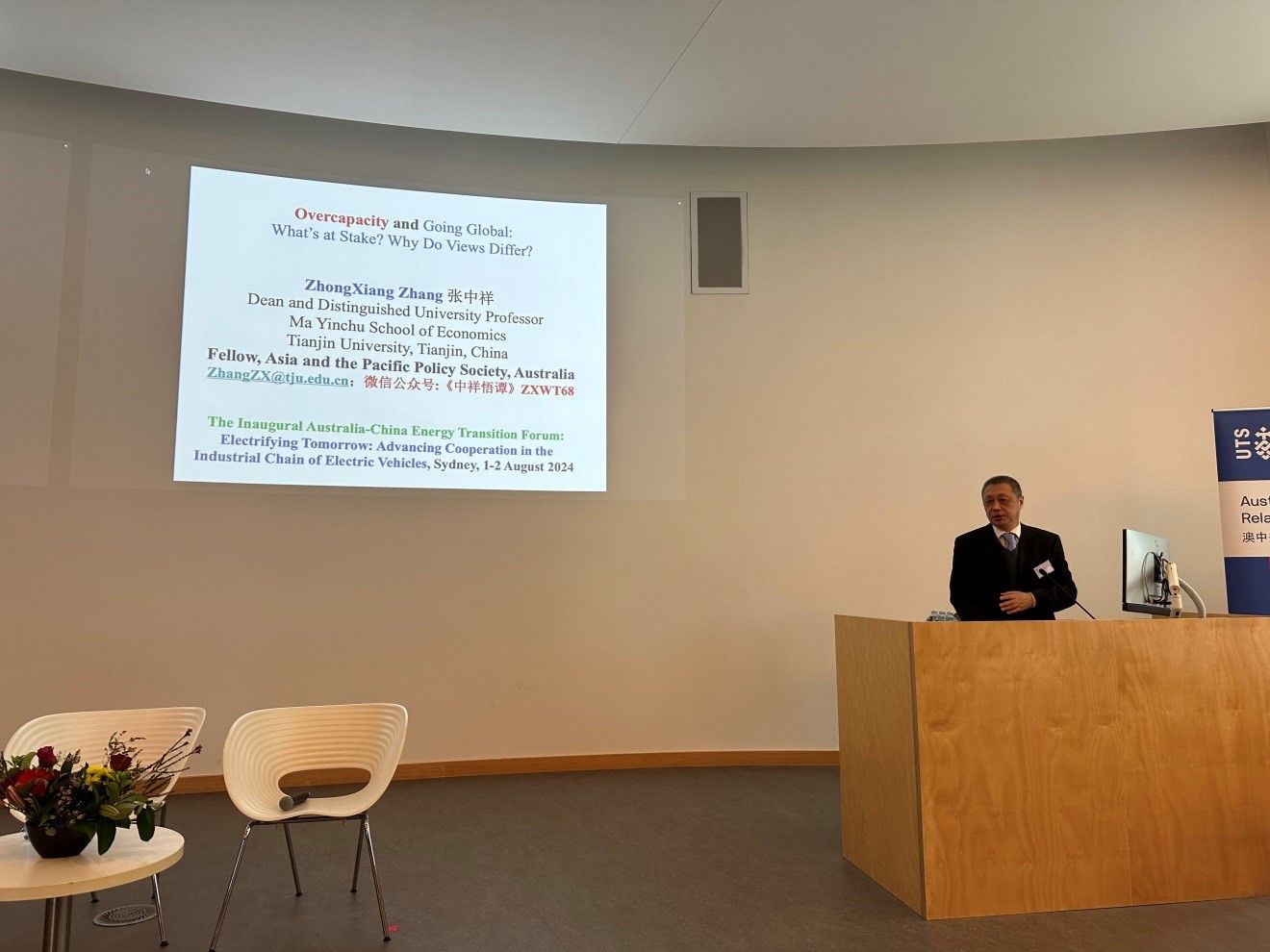 天津大学卓越教授、马寅初经济学院创院院长,国家能源、环境和产业经济研究院院长张中祥以“Overcapacity and going global: What’s at stake? Why do views differ?”为题受邀作了主旨发言。
