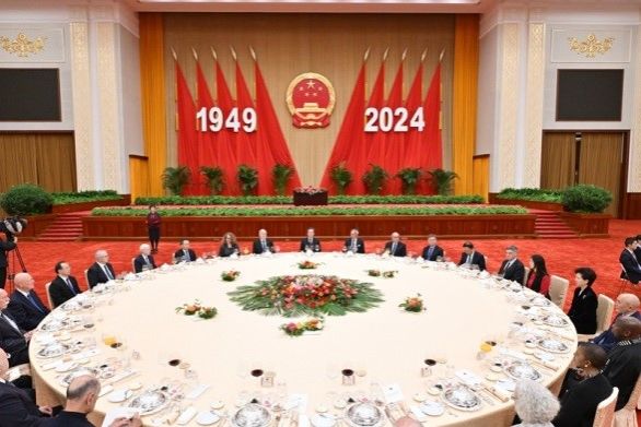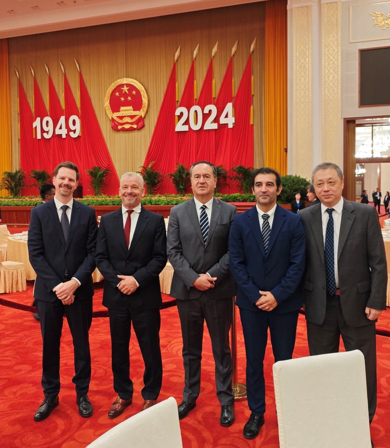 9月27日晚,庆祝中华人民共和国成立75周年外国专家招待会在人民大会堂举行,中共中央政治局常委、国务院副总理丁薛祥出席并致辞。招待会邀请了在华工作的外国专家代表及配偶,中央和国家机关有关部门、北京市的负责同志出席。天津大学卓越教授、马寅初经济学院创院院长,国家能源、环境和产业经济研究院院长张中祥受邀参加了招待会。