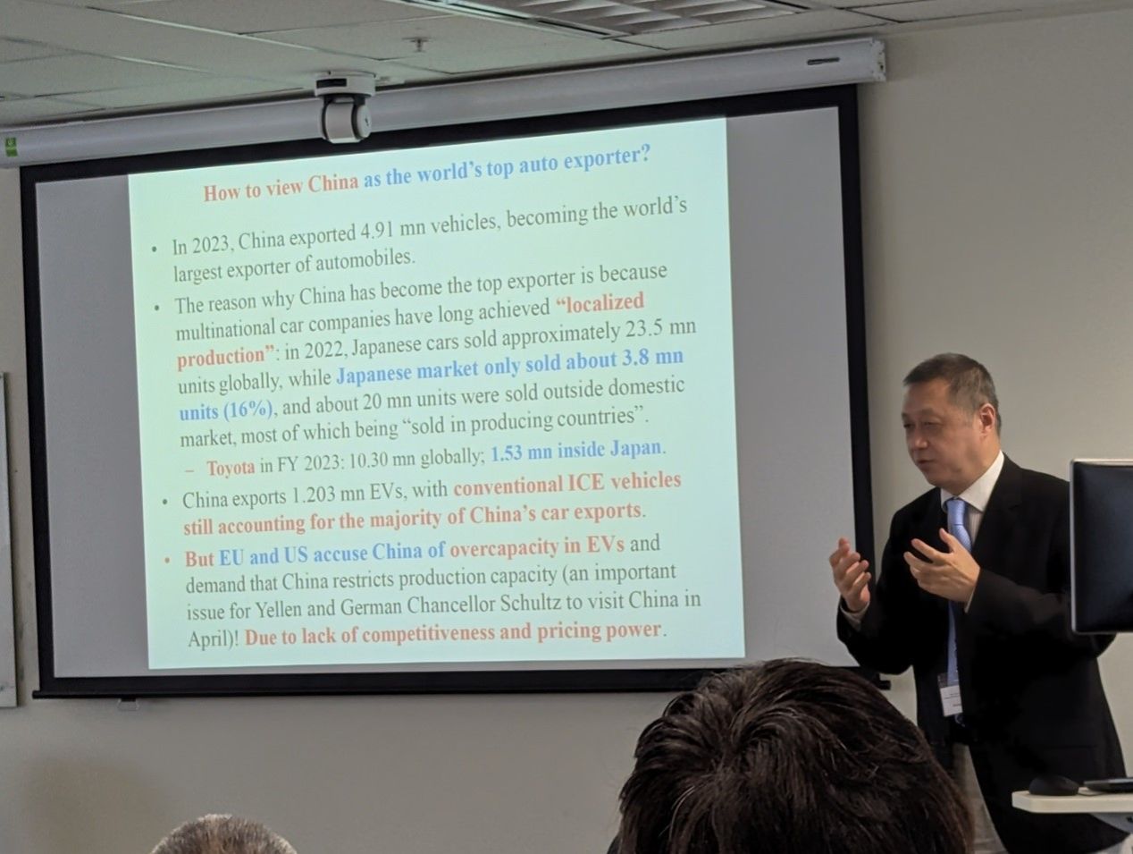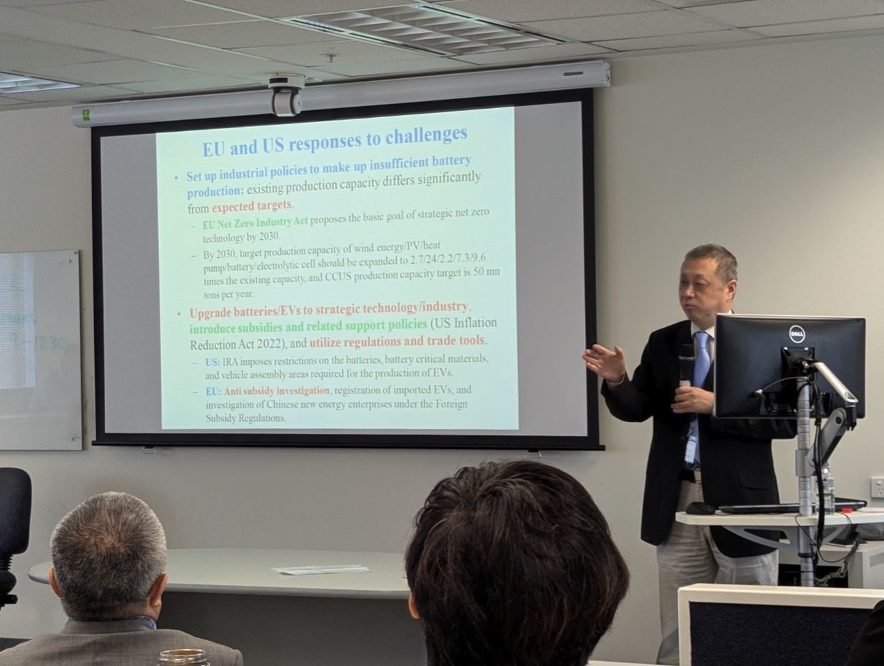 之后,张中祥依据一系列模型分析结果,详细分析了欧盟为何在中国电动汽车在欧盟大街上还不普遍时就开始征收高额反补贴税、欧盟与美国做法的异同和合理性、欧盟市场对中国电动汽车缺乏吸引力欧盟需要征收的关税水平、高额关税对欧盟本身和中国电动汽车出口欧盟的影响、为何欧盟决定征收高额关税后仍与中国就最低价格进行谈判但对最低价格方案格外谨慎、中国机电商会授权代表中国电动汽车企业谈判的意义和局限性、实施征收关税+最低价格混合方案的可能性等一系列问题。